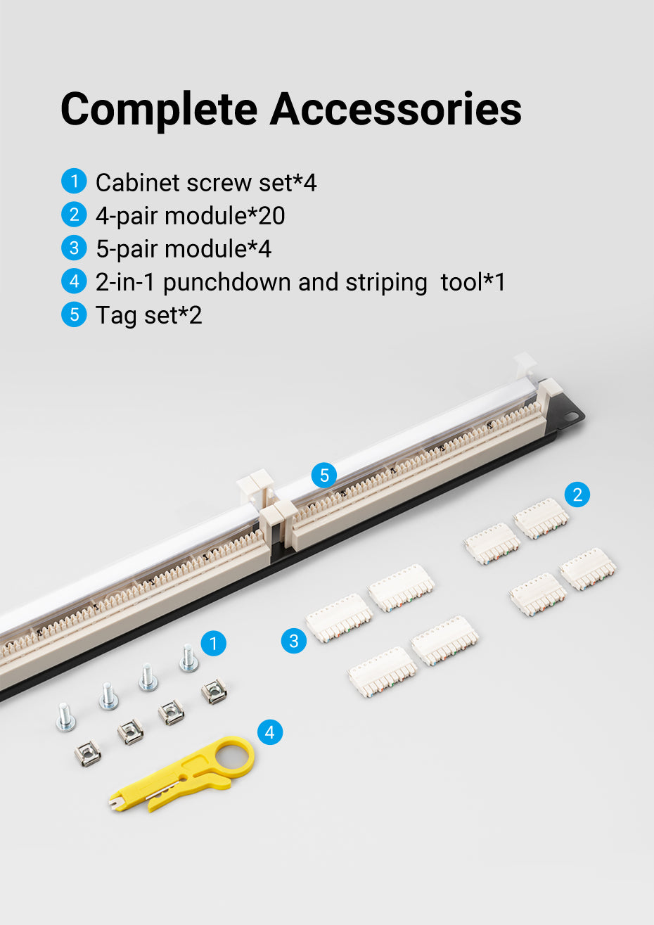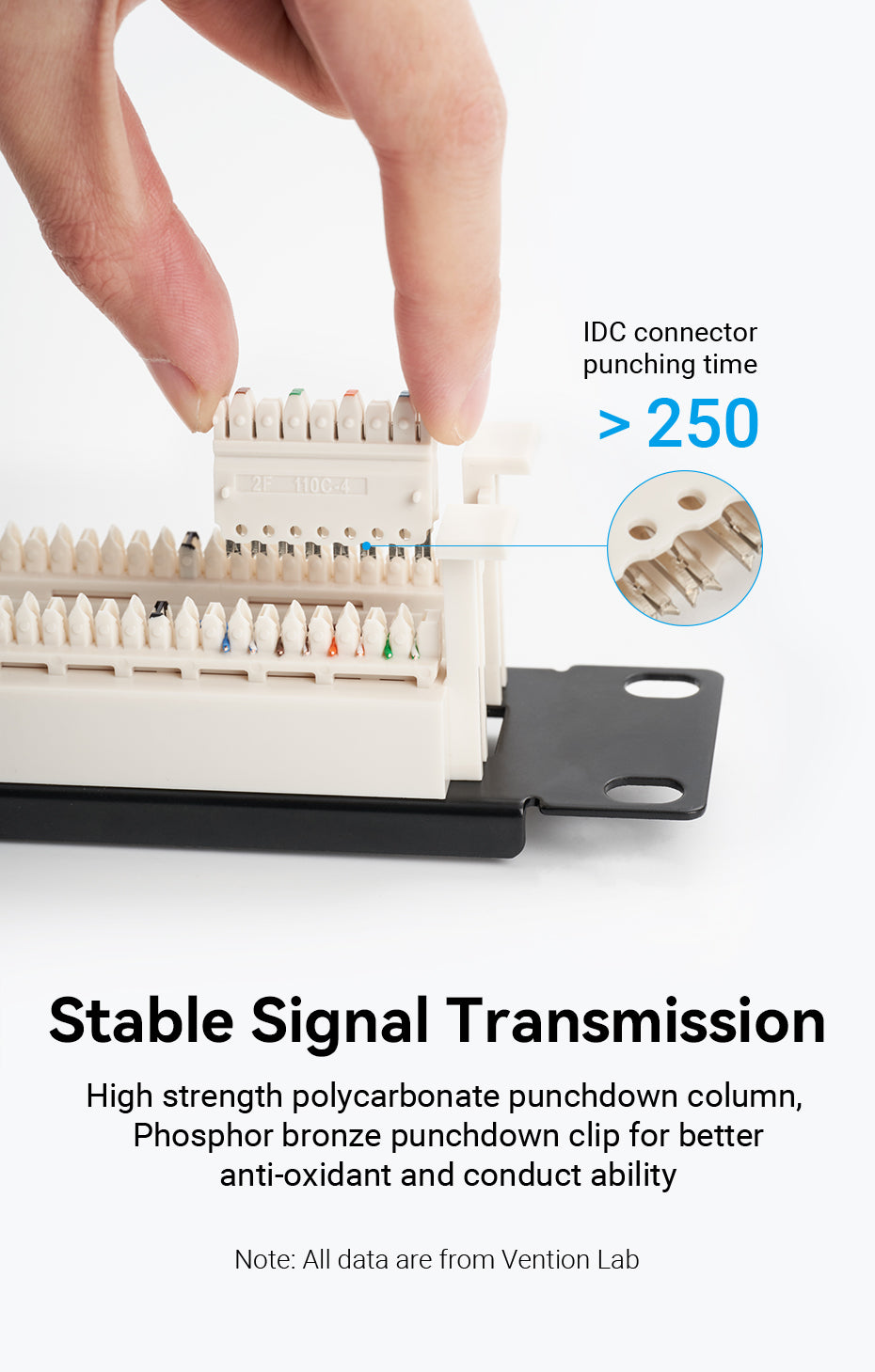 Alta durabilidad: El panel cuenta con una columna de perforación de policarbonato de alta resistencia y un clip de perforación de bronce fosforoso, lo que proporciona más de 250 ciclos de perforación de conector IDC, excelentes propiedades antioxidantes y conductividad superior.