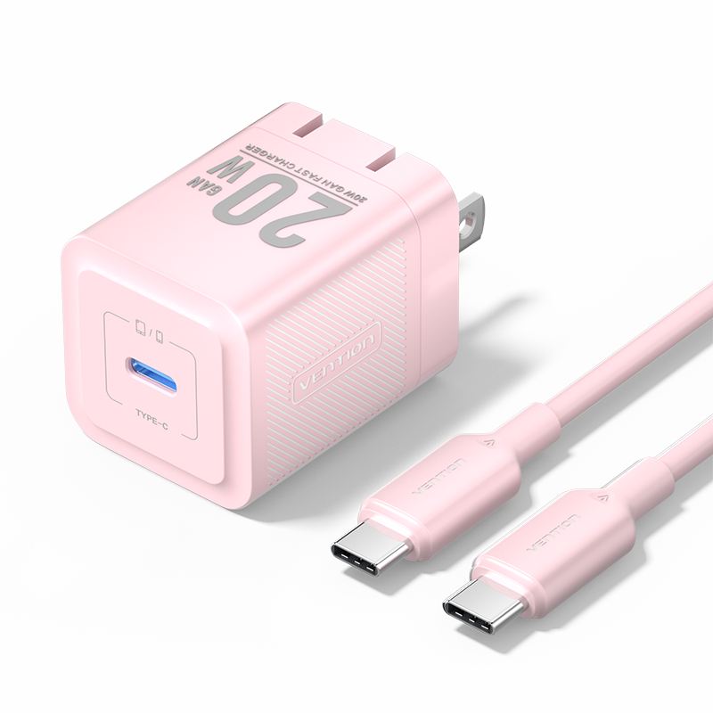 Vention 1-Port USB-C GaN Charger (20W) with USB-C to USB-C Cable (1M) US Plug
