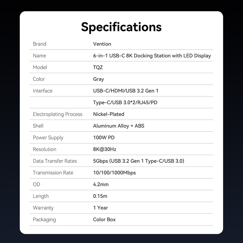 Vention 6-in-1 USB-C 8K Docking Station with LED Display