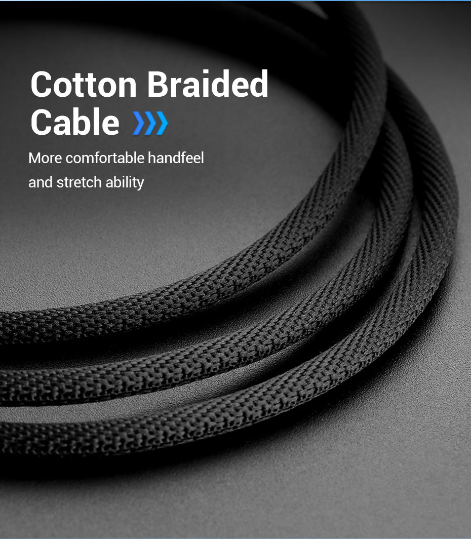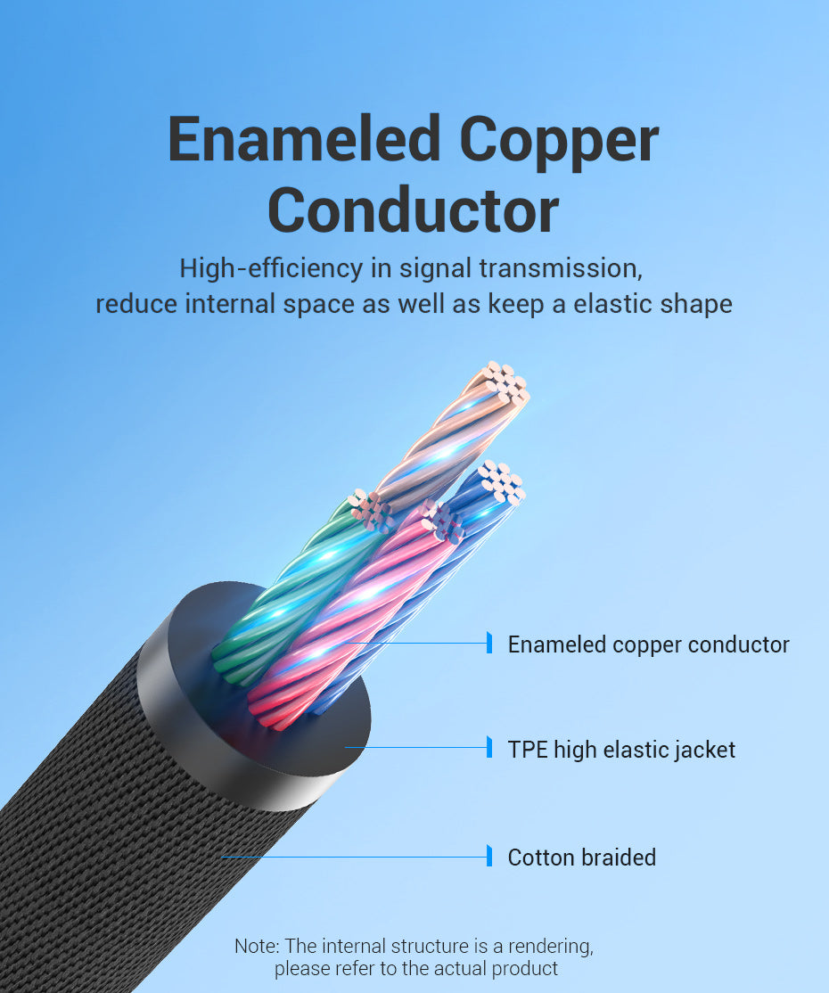 Kualitas Bangunan Premium: Dibuat dengan konduktor tembaga berenamel dan jaket TPE yang sangat elastis, dibungkus dalam bagian luar yang dijalin dengan katun untuk menambah kekuatan, fleksibilitas, dan rasa nyaman di tangan.