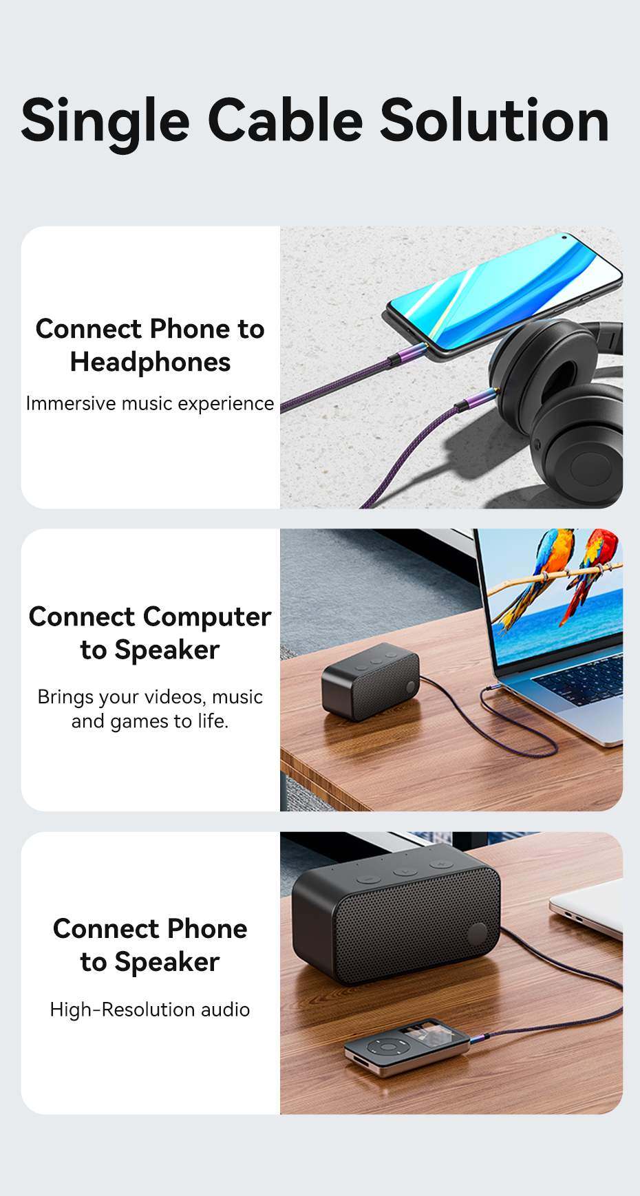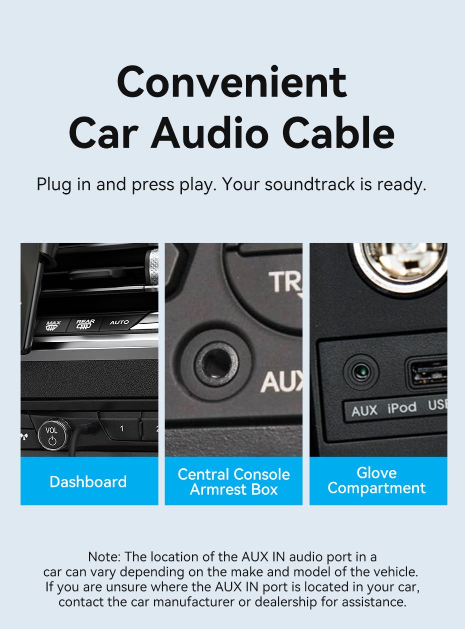 - Ideal untuk Audio Mobil: Nikmati daftar putar favorit Anda saat bepergian dengan menghubungkan telepon pintar Anda ke input AUX mobil Anda.