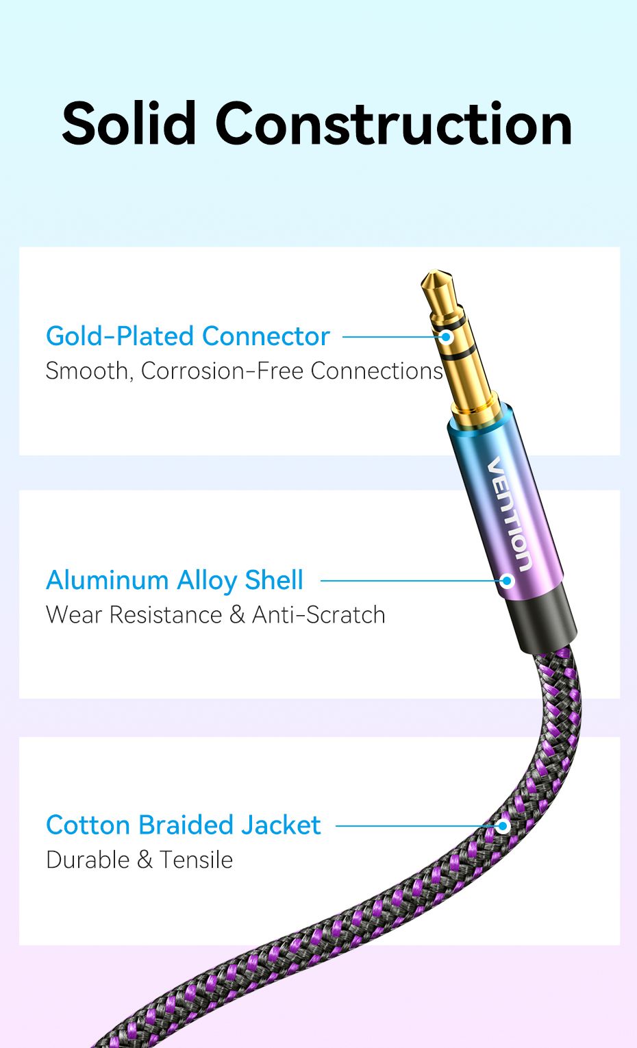 Selain dari kehebatan soniknya, Vention Kabel Audio 3,5 mm dibuat untuk performa yang tahan lama. Lapisan TPE yang tahan lama melindungi kabel dari keausan harian, sementara bagian luar yang dikepang dari bahan katun yang bergaya menambah kesan canggih dan meningkatkan ketahanannya. Kabel ini dibuat untuk menahan tekukan, puntiran, dan tarikan, memastikan koneksi yang aman dan kualitas audio yang tak tergoyahkan selama bertahun-tahun mendatang.
