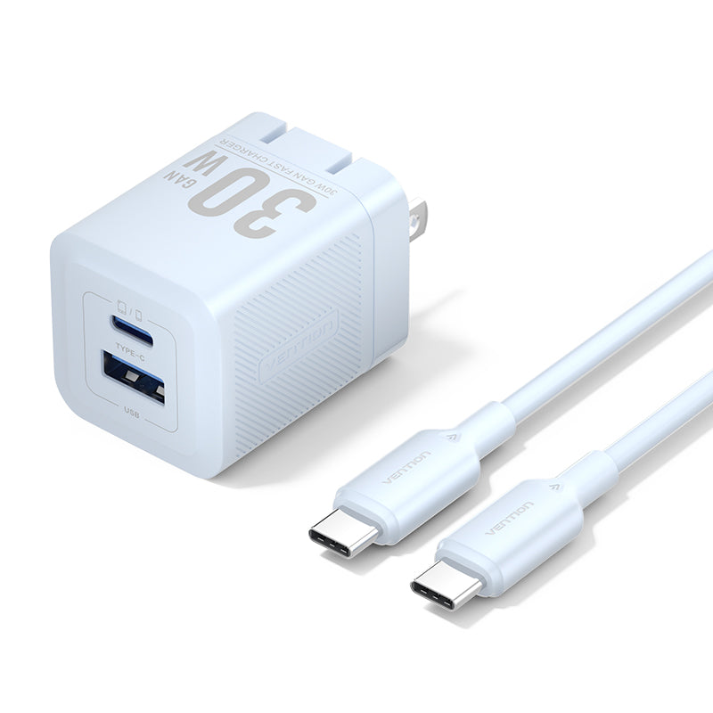 Vention 2-Port USB (C + A) GaN Charger (30W/30W) with USB-C to USB-C Cable (1M) US Plug