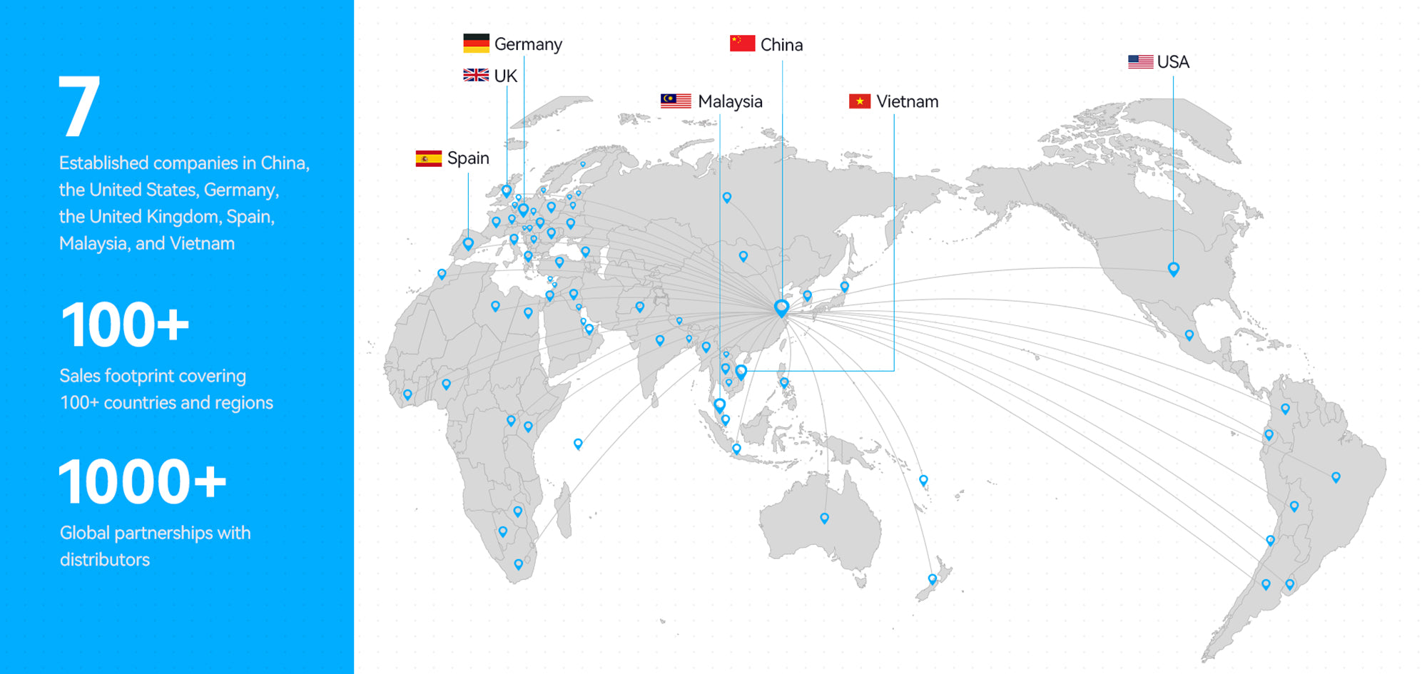 We have also established international offices in China, Germany, the United States, the United Kingdom, and Spain. Motivated by our values of "Honesty, Innovation, Cooperation, Focus, Progressive", we have secured 300+ patents for our groundbreaking designs. Our products are distributed through global business partners and leading e-commerce platforms, making Vention a trusted brand in 80+ countries worldwide.
