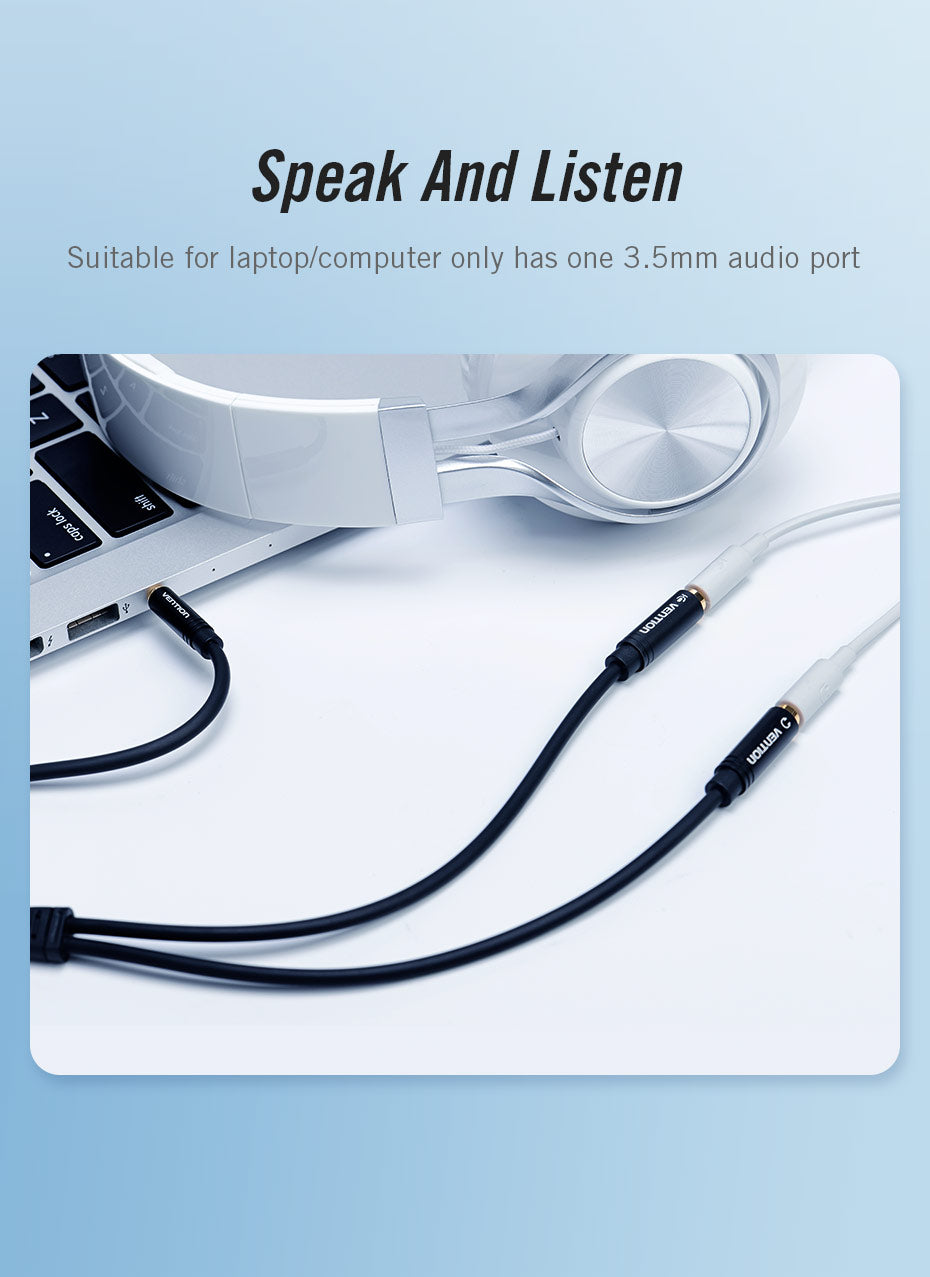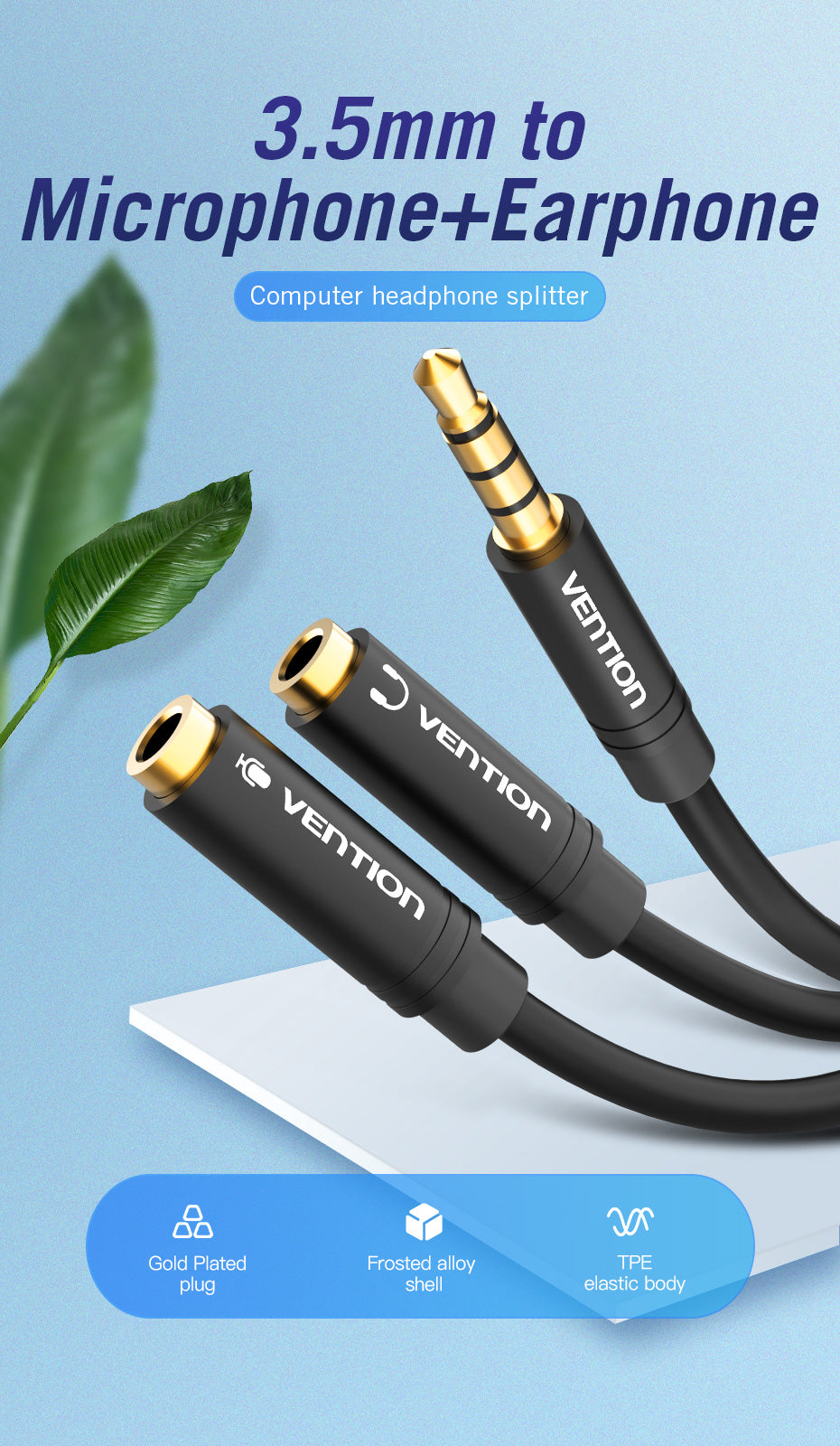 This 3.5mm audio splitter cable allows you to connect your headphones and microphone to a single 3.5mm audio port on your computer. It features high-performance noise reduction technology, an enameled copper core for high-fidelity sound, and a gold-plated connector for enhanced signal transfer. The cable is also durable and tangle-free, thanks to its TPE elastic body and adjustable split cable design.