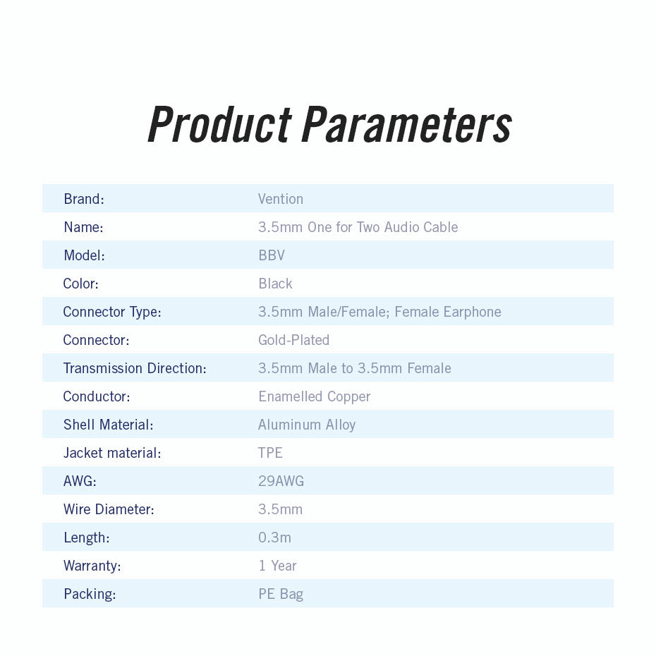 - Transmission Direction: 3.5mm Male to 3.5mm Female