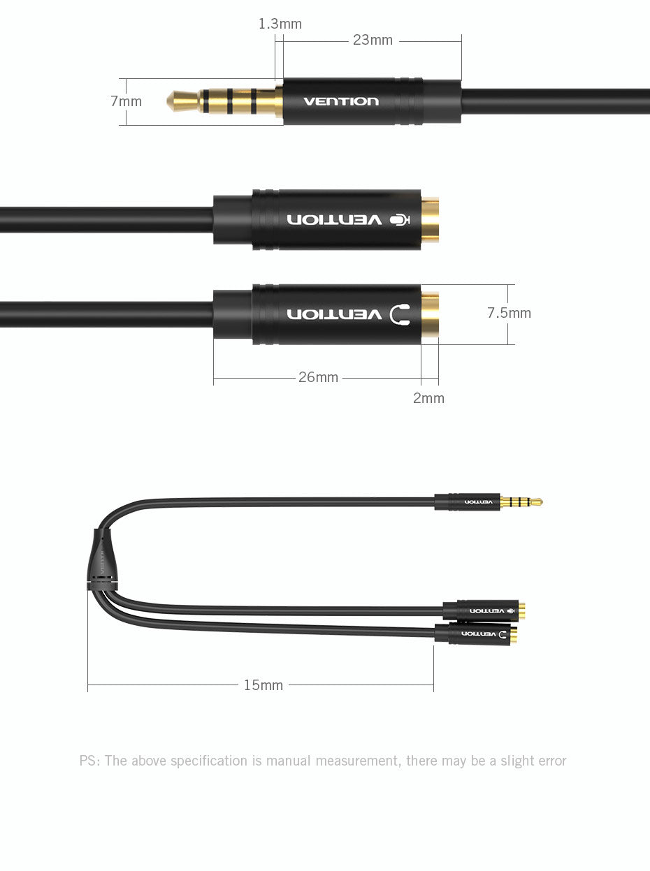 - Connector Type: 3.5mm Male/Female, Female Earphone
