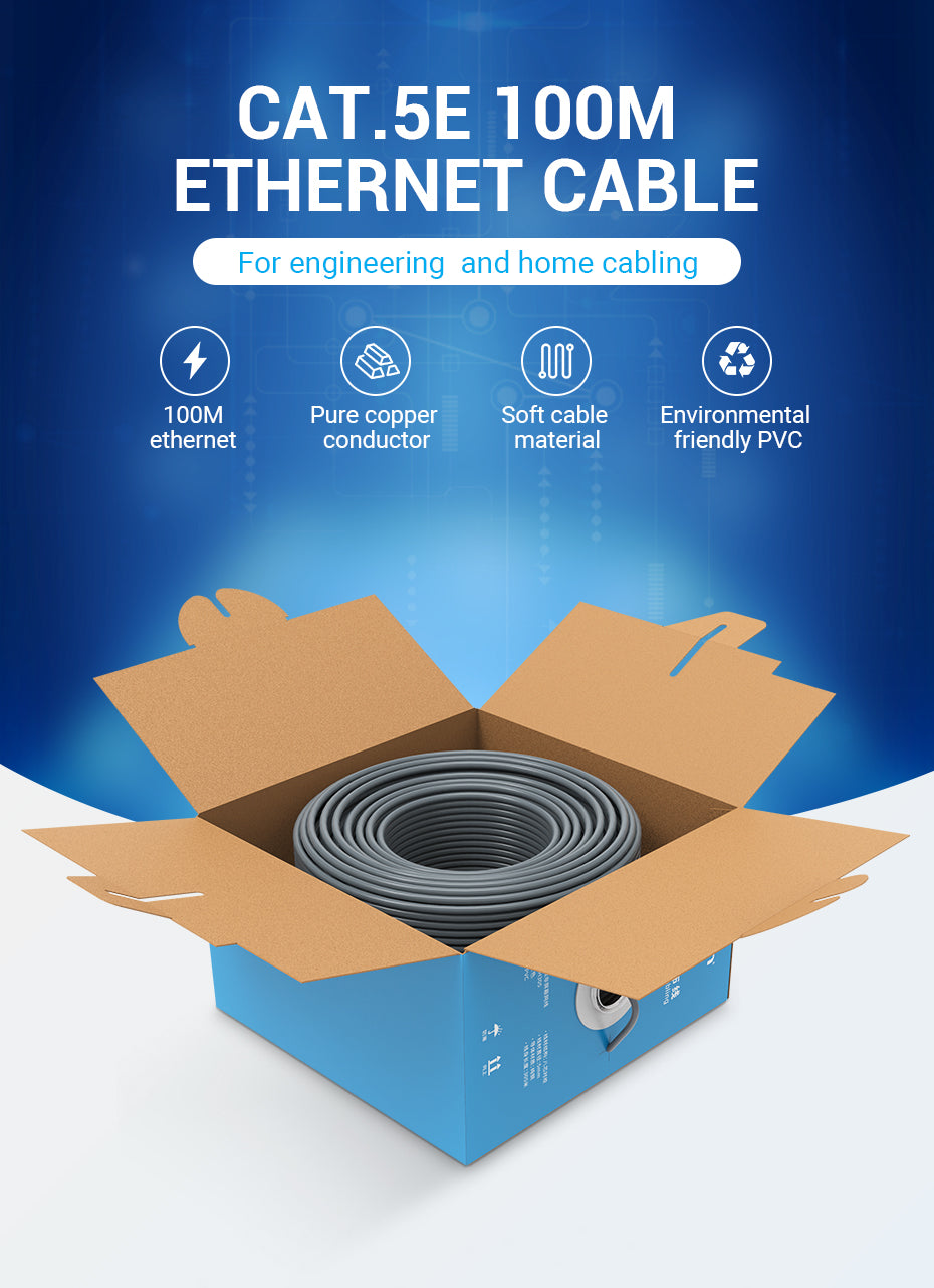 Introducing our high-performance Cat.5e 100m Ethernet Cable, the ideal solution for both engineering and home cabling needs. This versatile cable is designed with cutting-edge technology and premium materials to ensure maximum efficiency, durability, and reliability. Whether you're setting up a complex network infrastructure or simply upgrading your home internet connection, this cable offers unparalleled performance.