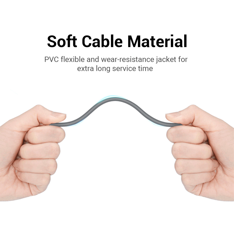 Soft Cable Material: The outer jacket is made from high-quality flexible and wear-resistant PVC, ensuring the cable can withstand regular bending and physical stress without damage. This flexibility makes it simple to route the cable around obstacles and through tight spaces, making installation a breeze.