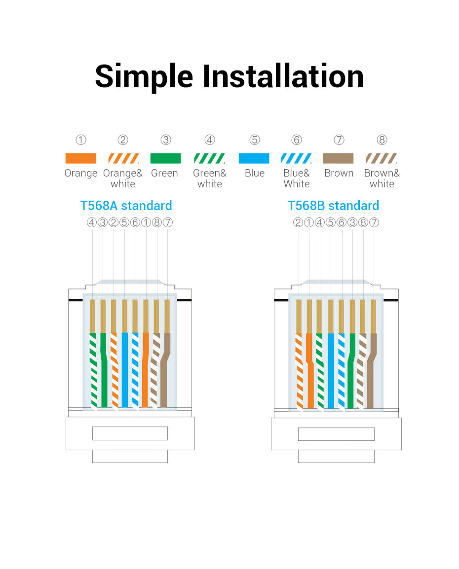 Simple Installation: Adhering to both T568A and T568B wiring standards, our cable is designed for straightforward installation. These standards ensure compatibility with various devices and networking equipment, making it easy even for those with limited technical knowledge to set up their network.