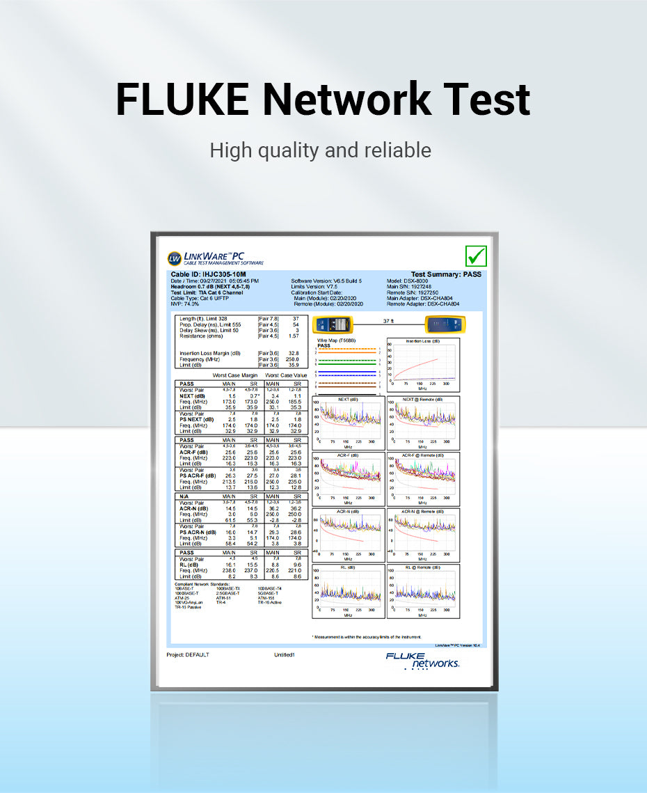 Each cable undergoes a rigorous FLUKE Network Test, which certifies its adherence to high-quality standards and optimal performance. This testing ensures that the cable meets stringent criteria, providing peace of mind that your network will run smoothly and efficiently.