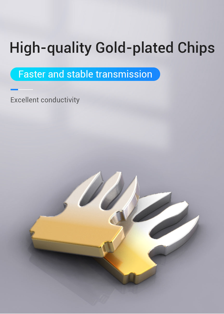 - Connector Chips Technics: Three-pronged Gold-Plated 1U Chip, designed for full contact and efficient data transmission