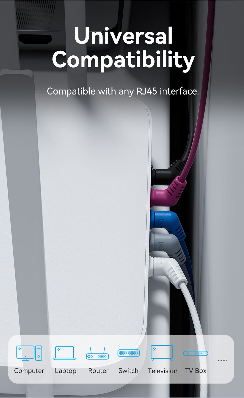 This versatile cable is compatible with any RJ45 interface, making it the perfect choice for various devices including computers, laptops, routers, switches, TVs, and more. Its universal compatibility ensures that you need only one type of cable for all your connected devices.