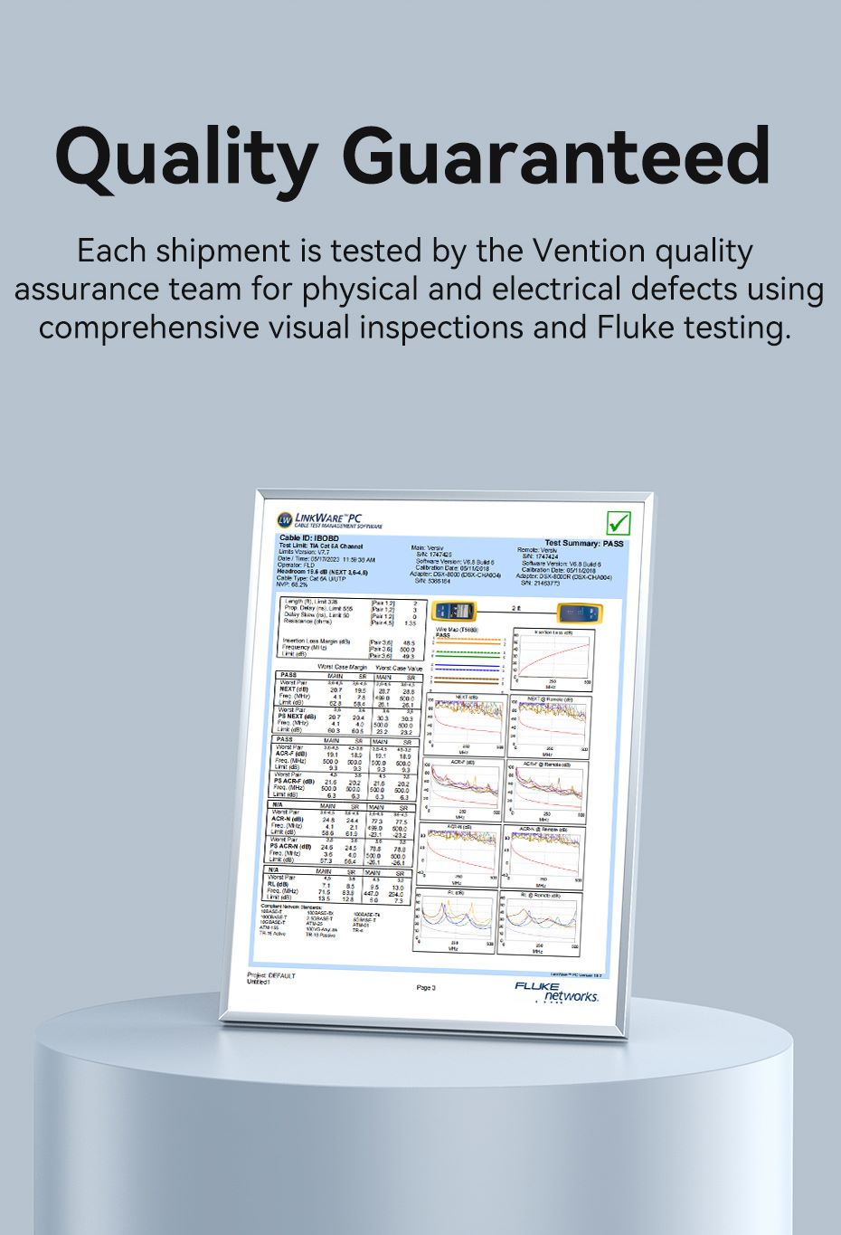 To ensure top performance, each shipment undergoes rigorous testing for physical and electrical defects by the Vention quality assurance team. These tests include comprehensive visual inspections and Fluke testing, ensuring the product you receive is reliable and of the highest quality.
