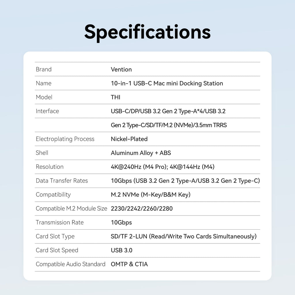 Vention 10-in-1 USB-C Mac mini Docking Station