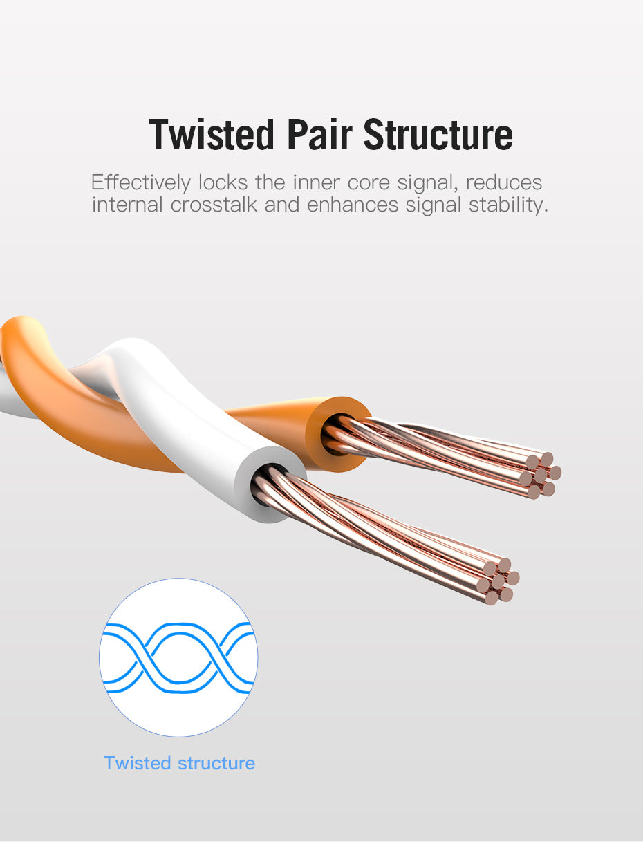 双绞线结构: 双绞线结构有效锁定内芯信号,减少内部串扰,增强信号稳定性,让您的连接更加可靠。