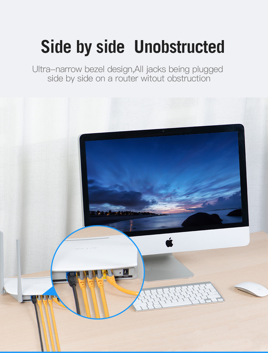 并排无障碍设计: 超窄边框设计允许所有插孔在路由器上并排插入而不受阻碍,从而更轻松地管理您的网络设置。