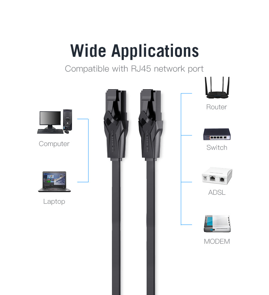 - 广泛兼容性:此电缆兼容 RJ45 网络端口,可用于各种设备,包括路由器、交换机、调制解调器、ADSL、笔记本电脑和台式电脑。
