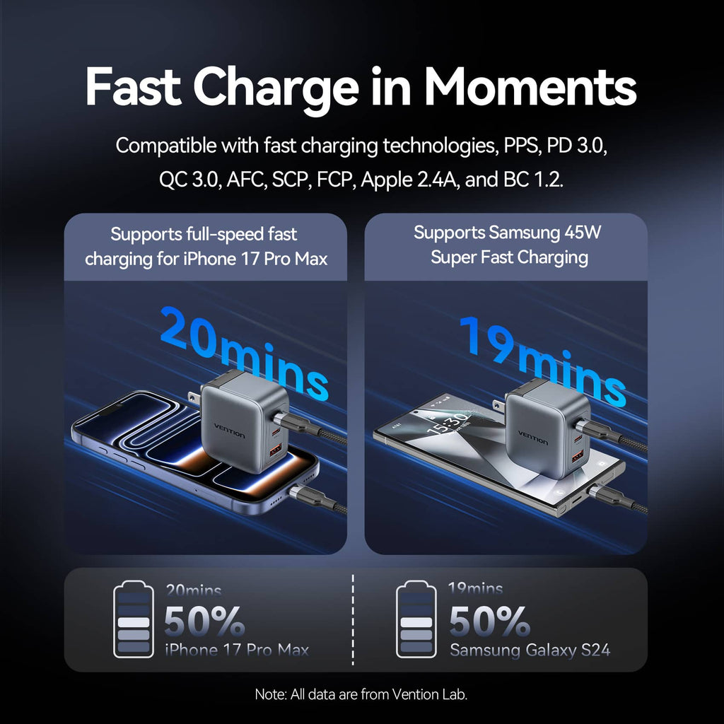 Vention 3-Port USB (C+C+A) GaN Charge...