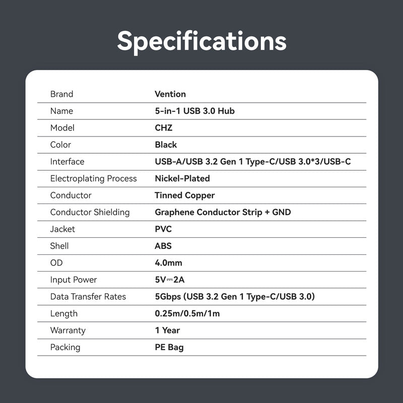 Vention USB 3.0 to USB 3.2 Gen 1 Type-C/USB 3.0*3/USB-C Desk Hub Black