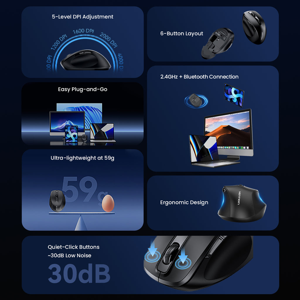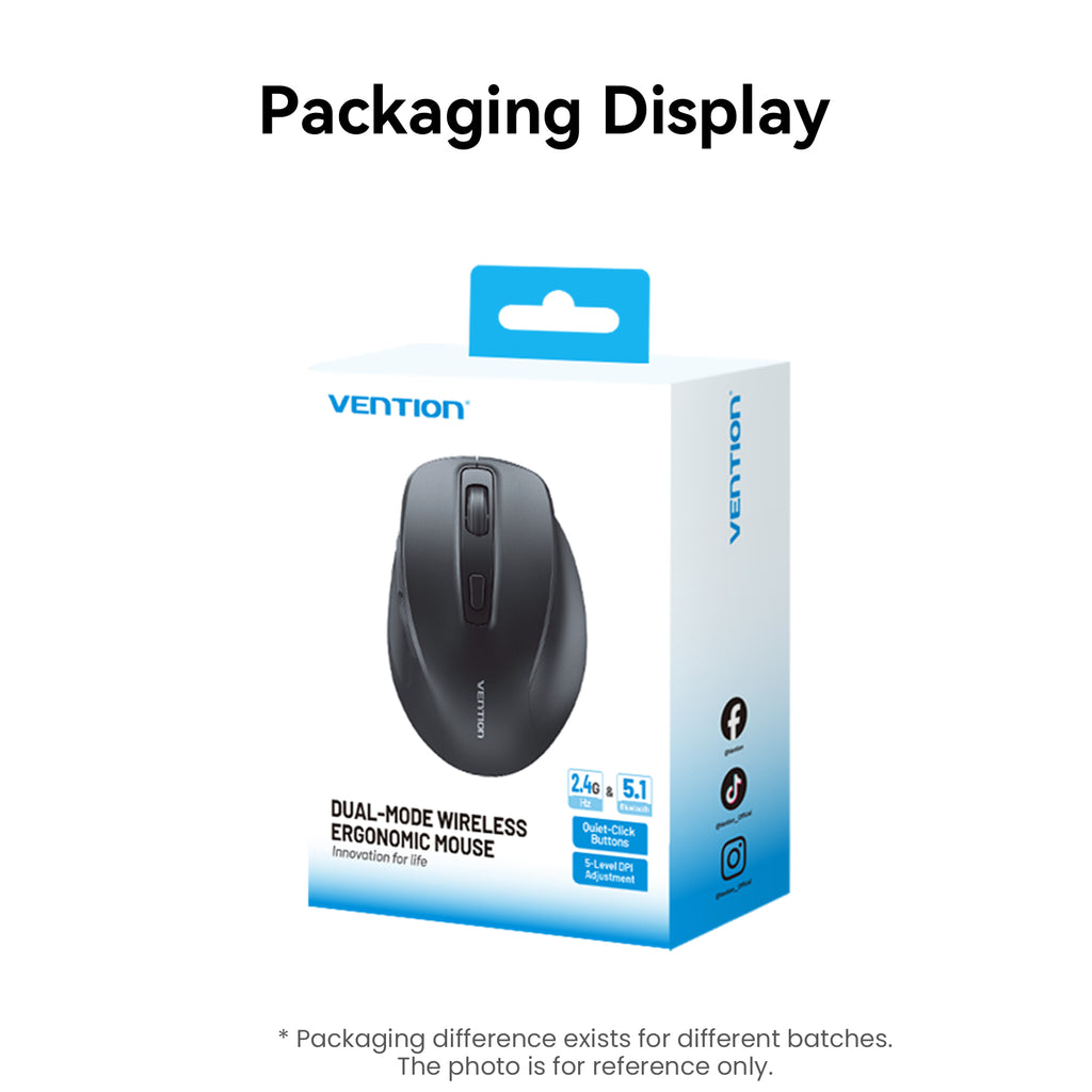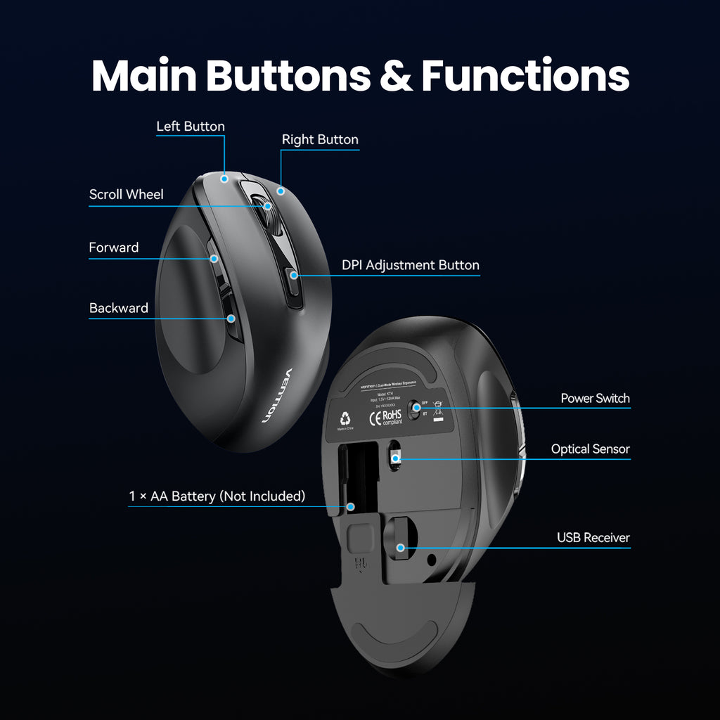 Vention 6-Button 2.4GHz Wireless Ergonomic Mouse Black Silent Type