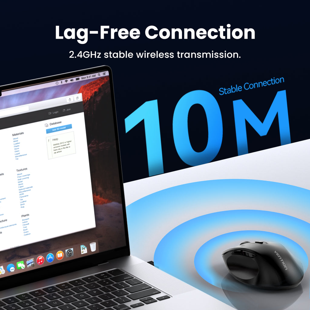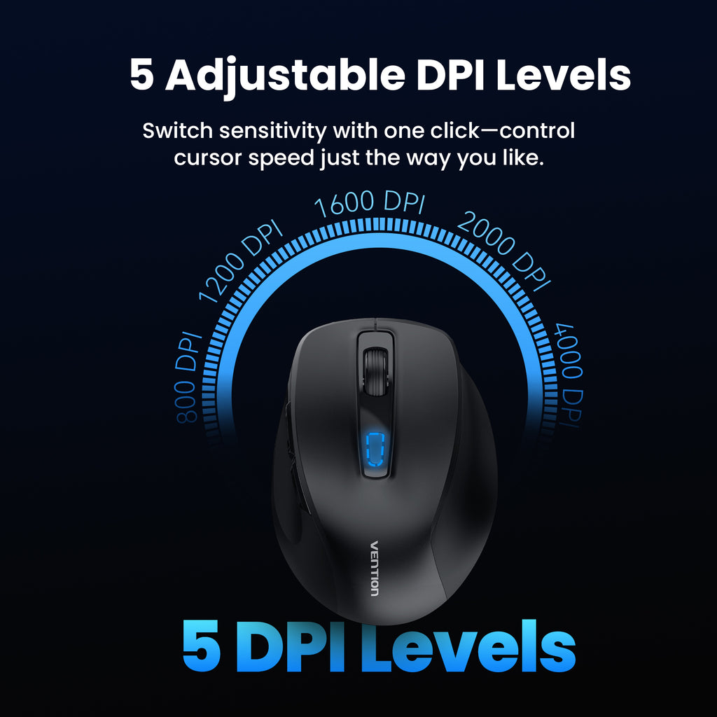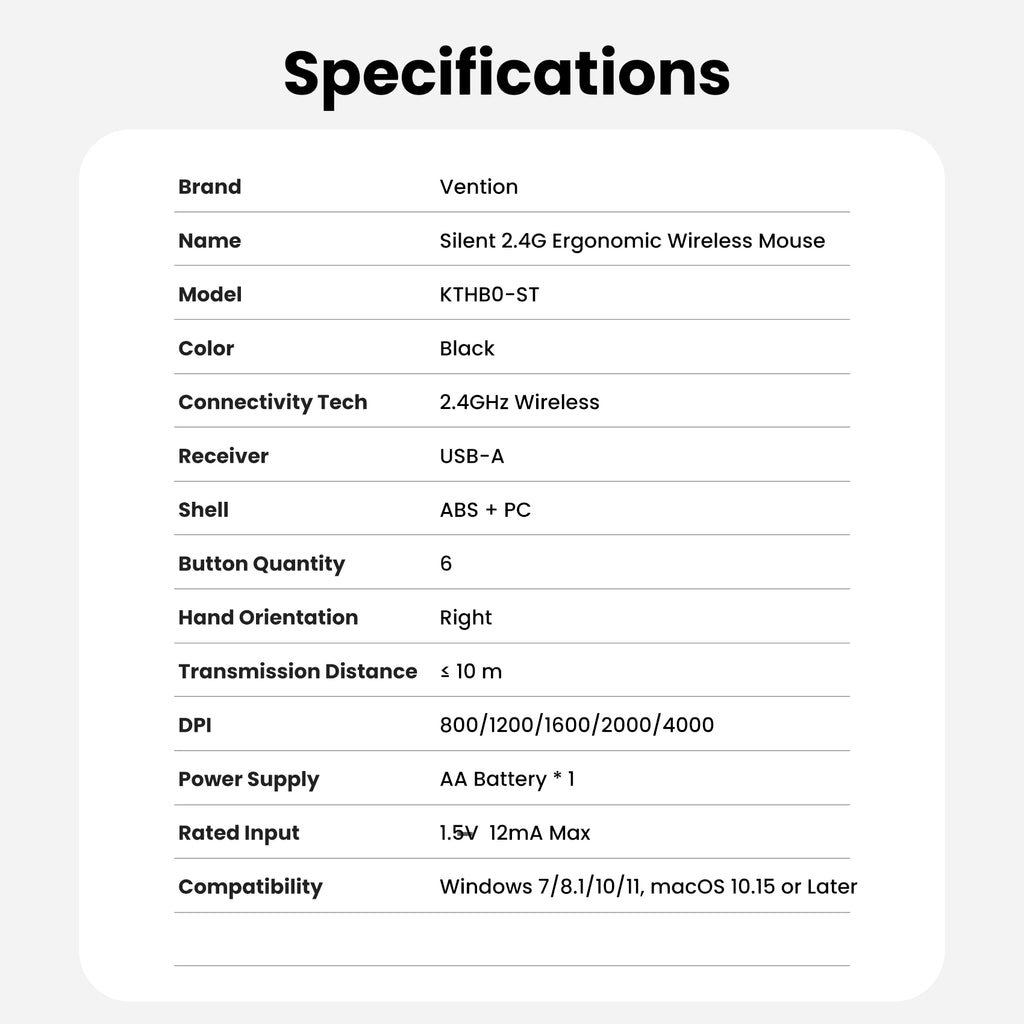 Vention 6-Button 2.4GHz Wireless Ergonomic Mouse Black Silent Type