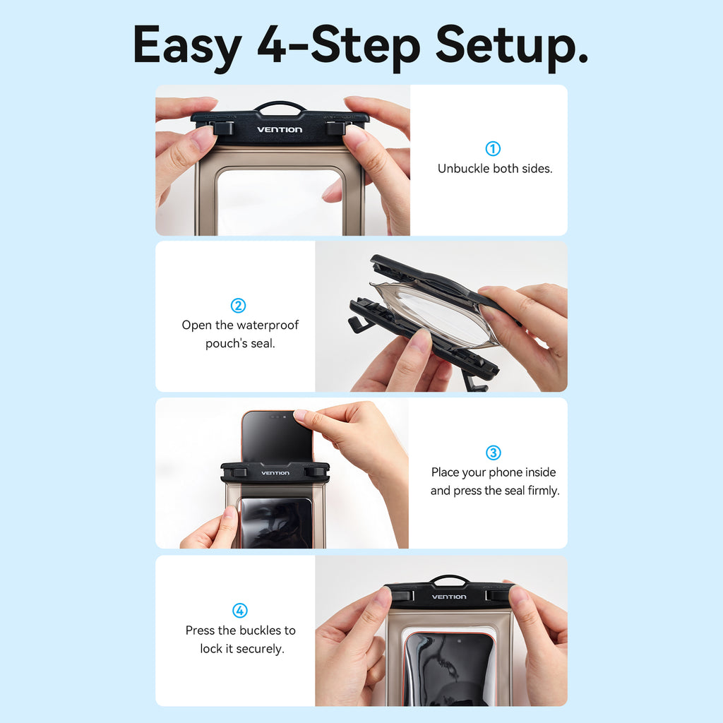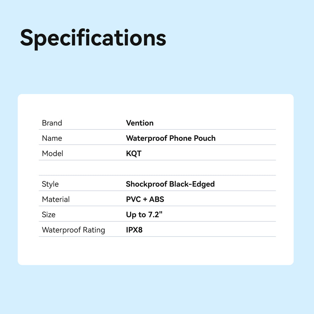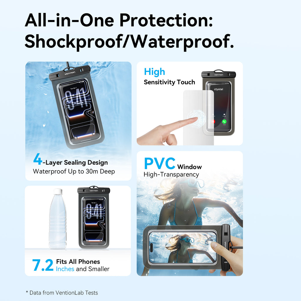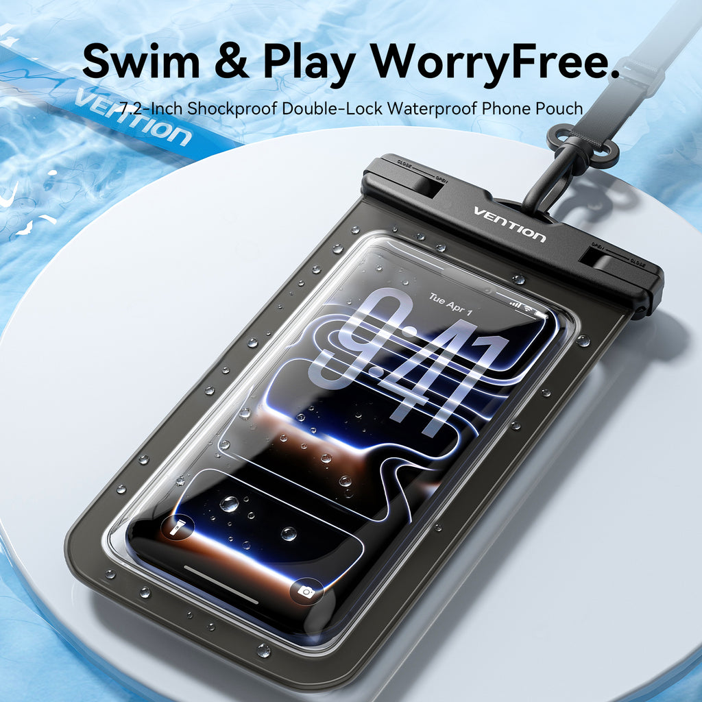 Vention 7.2-Inch Transparent Waterproof Phone Pouch with Lock Seal Black